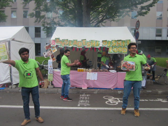 今回は約5年ぶりに、札幌在住時の仕事仲間のバングラデシュ人の誘いで立ち寄ってみました。てか、立ち寄る以上に、流れ的に何故かバングラデシュブースの売り込みを手伝うことになり、声を張り上げて売り込みしていたら、バングラ人の皆様に非常に親切にして頂き、色々な食べ物や飲み物もご馳走になってしまいました…(^^;)。