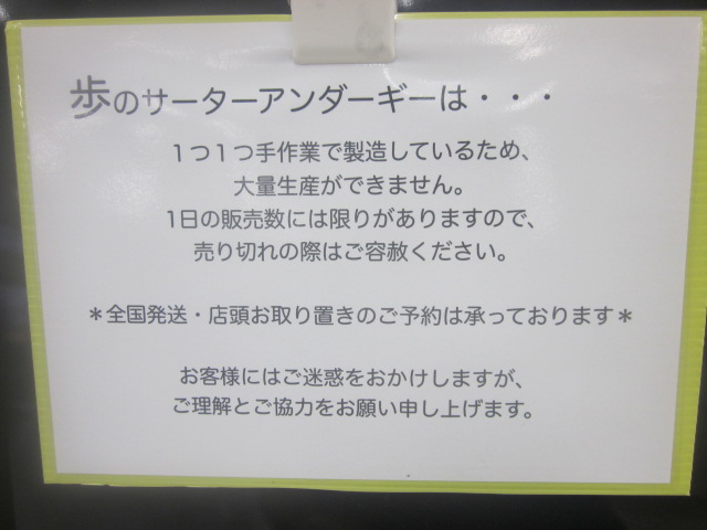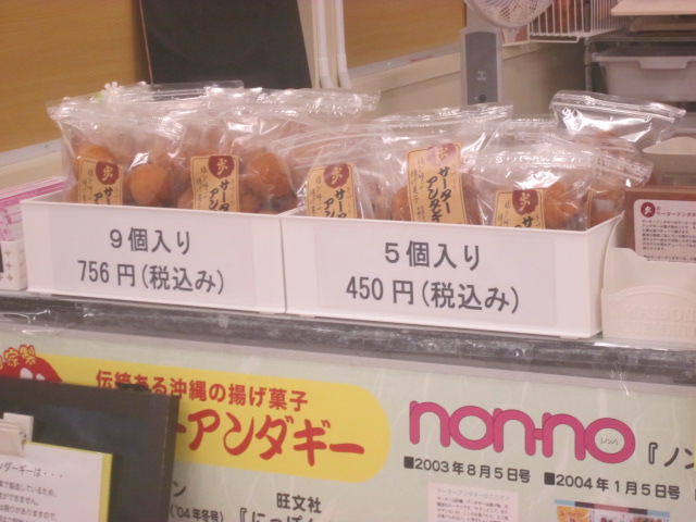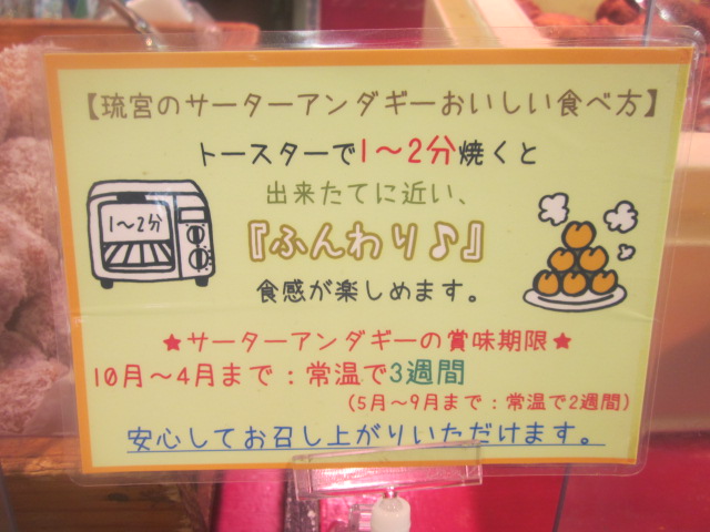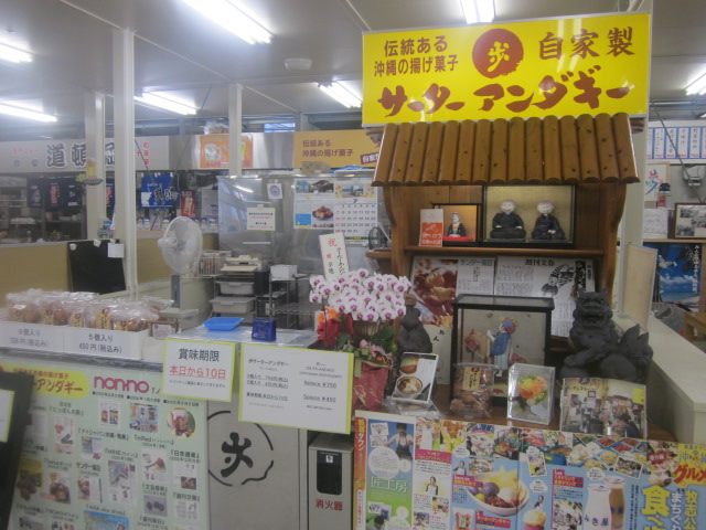 勿論仮設、ですので、将来的には元の第一牧志公設市場跡にリニューアルオープンするものと思われますが、仮設店舗が始まったのは夏の7月から、ということもあって、やはり暑い夏にサーターアンダギーを食べたいという方は相対的に減少し、売り上げが落ちるようで、私は夕刻に訪問しましたが、かなり在庫がありました。