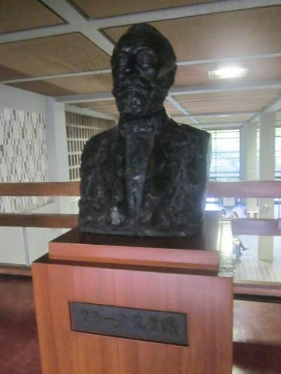 北大の札幌キャンパスのメインストリートの南端にある会館で、北大祭などを始め、色々なイベントの会場としても使用されています。1Fの食堂は結構人気がありますので、昼時は混雑することも多いですが、2Fにひっそりと佇む”もう一つのクラーク像”は、観光地として有名となっている、古河講堂脇の像よりも、台座部分が立派で、より精巧なタッチでお顔を間近で拝める良さがあるかなと思います。因みに、クラークさんのお隣には、元北大学長の杉野目晴貞氏の像もありますので、お間違えの無いように両者を見比べてみるのも良いですね。