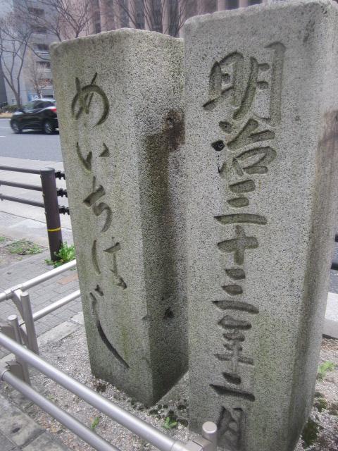 すると、以前は付近を自転車で覆われていて、少しかき分けるようにして撮らざるを得ない感じで、碑の周りの不遇な状態が悲しくなったものですが、放置自転車対策が徹底したからなのか、今回訪れてみると、碑の周りがすっきりとしていて、凄く確認しやすくなっていました。