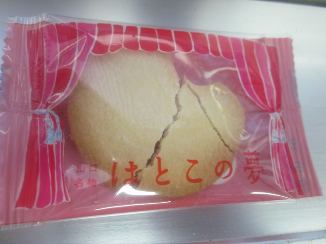 今回は、列車の乗り継ぎ時間を利用して約40分のプチ徳山観光を終えた後、小腹が空いたので車内で何か食べようと立ち寄ったのがこちらでした。改札のすぐ傍にあるので、急ぎの鉄道旅にも使える店舗だと思います。とにかく安いのを、と慌てて探したのが「はとこの夢」というサブレのようなお菓子でお値段も50円とリーズナブル、サクッとした歯触りや、くどさのない甘さが美味しかったです。