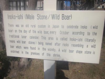 ただ、ここに関しては神社と申しましても、本殿がある訳ではなく、この辺りの地名の由来となった野猪の形をした石がご神体となっていますので、こちらを拝むことになります。