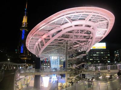 一昔前までは、普通のオレンジ色っぽい電球の光しか見られなかった名古屋テレビ塔のライトアップですが、最近では、結構カラフルにライトアップされているようで、今回は年末の夜に拝見しましたが、付近のイルミネーションや、大型の船のようなオアシス21越しに眺めた姿とか、なかなか近未来的な雰囲気が漂っていて良かったです。そういえば、かつてデザイン博が開催されていた頃(デポちゃんが懐かしい…)、名古屋はデザイン都市としての進化を遂げていく旨の話を声高に謳っていたように思いますが、こうして今の名古屋を見ていると、あの時の宣言はまんざら嘘でもなかったのかな、と、意外と名古屋のスタイリッシュな姿を見て、ある意味誇りに感じたりもしました。