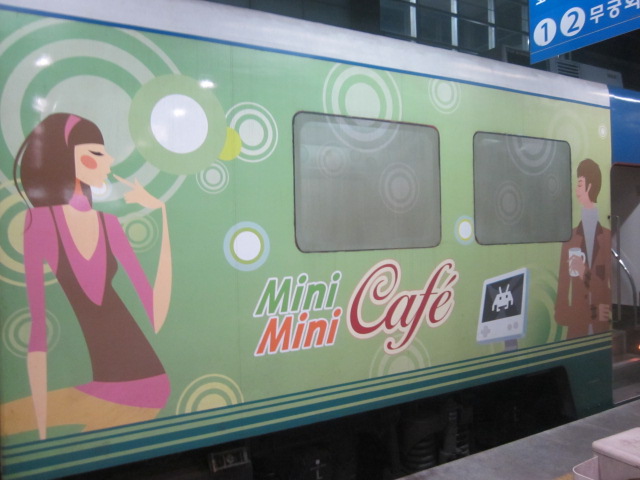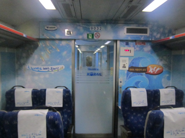 この列車は終着が浦項ということもあって、1号車の塗装が浦項のデザインになっていて、ちょっとユニークに感じました。あと、カフェカーみたいなのもありましたが、そこに設置されていた自販機は故障中でした。- 旅行時期