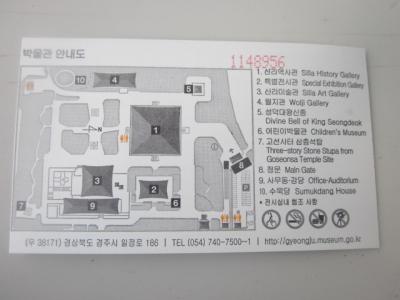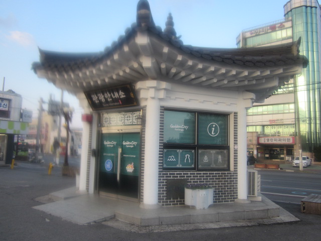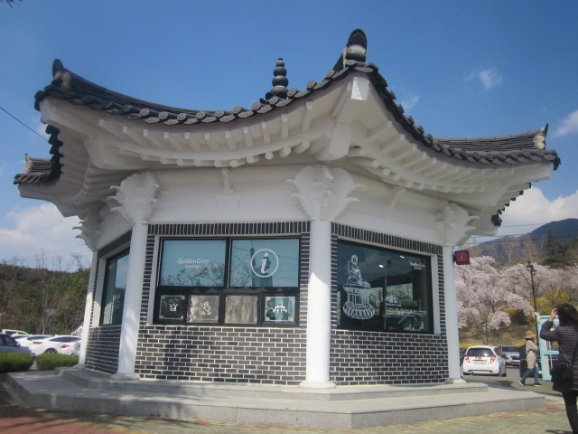 仏国寺傍にある観光案内所で、バス停から見るとすぐ向かいに六角形の建物が目に入ると思います。流石に慶州を代表する観光スポットということもあって、ここは日本語対応もしっかりとしていて、パンフレットも仏国寺と石窟庵のがそれぞれ別に用意されていて、詳細な解説で見やすかったです。ただ、スタッフの方の日本語対応はやや怪しげな風情で、最初、普通の慶州の全体の地図を渡されました。寺内案内図(サネアンネド)位のハングルは覚えておかれると、スムーズにこの詳細な寺内のマップを頂けるかなと思います。