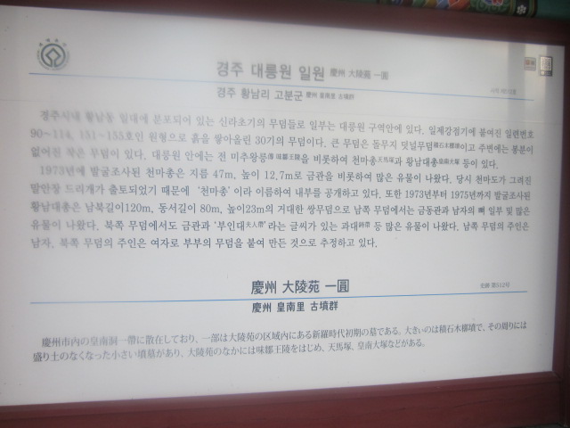 何れにせよ、歴史好きの方でしたら、ここに関しては半日位かけてゆっくりと巡られるのがお勧めで、慶州で何日か取れる予定がおありでしたら、天候に応じて、晴れている時は屋外の観光地をメインに、悪天候時にこちらの博物館巡りをスケジュールに組まれるのが良いかと思います。- 旅行時期