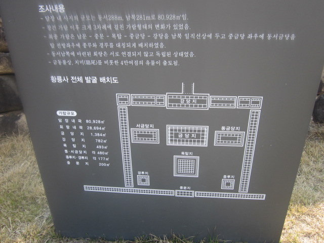現在の風景としては、雁鴨池の北東部に広がる、だだっ広いオープンスペースになっているエリアですが、元々ここには新羅を代表する立派なお寺があって、その金堂跡や本塔跡の礎石の様子が往時の様子を偲ばせてくれます。