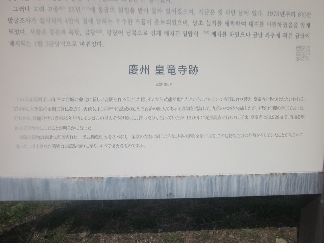 私は春の訪問でしたが、正直ここは風通しが良い分、3月末という時期でしたが、かなり風が強くて、体感温度的には非常に寒かったです。私は歩いて巡りましたが、発掘中の箇所などもあったりと、寺址の史跡全体のエリアとしてはかなり広いので、正直、レンタサイクルで巡られるのが良いスポットかなと思います。尚、有料ではありますが、別に皇龍寺歴史文化館という立派な施設もありますので、詳細な発掘品などをもっと楽しみたい、という方にはこちらの施設観覧がお勧めです。