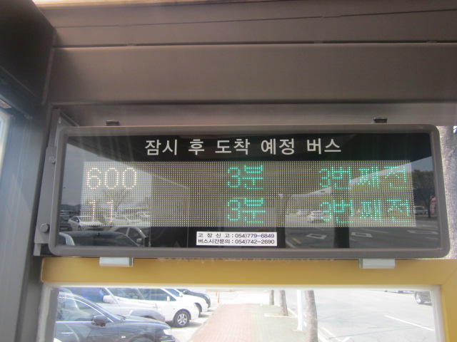 今回は、国立慶州博物館の見学後に、11番のバスを利用して仏国寺に向かいました。博物館からは目の前の駐車場の向かいに、仏国寺方面に向かう11番(10番)のバス停があります。私は日曜日の利用でしたが、途中バス停からの乗車は混雑が酷いかなと思う中、意外と博物館からはまだ空いていて、座って向かうことが出来ました。