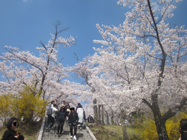 桜並木自体はまさに満開状態で、桜越しに陵墓を眺める風情など、春の慶州らしい景観を堪能することが出来ましたが、朝に訪問した時は、車に邪魔されることなく悠々と撮影できた一方で、夕方は尋常でない混雑で、何やら騒々しくて桜を愛でる雰囲気には正直なれませんでした。春の桜目的で訪問される場合は、絶対に朝がお勧めのスポットです。- 旅行時期