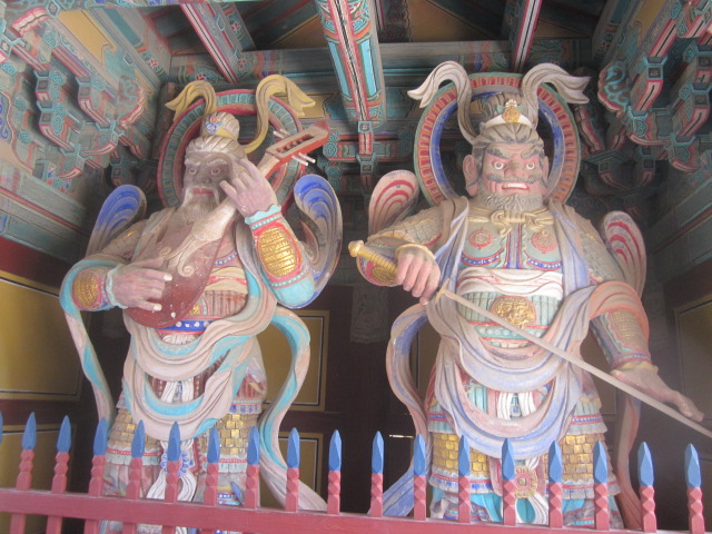 仏国寺の有料エリアに入って、最初に通過する門がこちら(券売所があるところの門とは違います)です。正面からの外観に関しては、特筆する程でもないかなと思われる、ごく普通の門の風情ですが、ここは門の内部の両側に鎮座されている天王様(?)の計四体の像のデザインが秀逸だと思います。