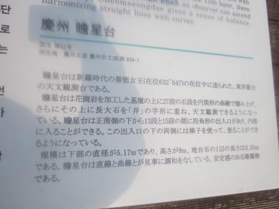 慶州市街地南東側の東部史跡地帯一角にある、石造の昔の天文台建造物です。茶褐色の趣ある風情の建造物で、付近は広々としたオープンスペースとなっていますので、あらゆる角度から背景と共に、好みのアングルを探して撮影すると良いです。