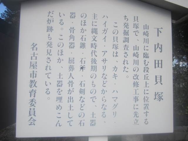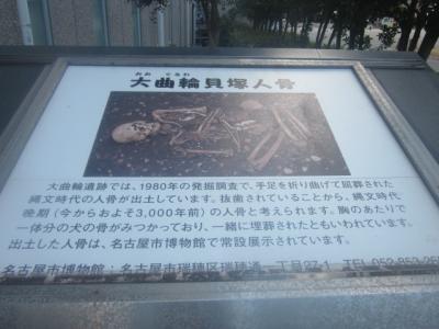 そんな中で、昭和55年にこの大曲輪貝塚傍の競技場の改修工事の際の発掘調査で見つかった人骨が一世風靡したこともあり、今でも競技場の脇に貝塚を示す一角と、この人骨が今では近くの名古屋市博物館に常設展示されていることを示す誇らしげな案内板なども設置されているので、ご興味がある方は、博物館まで足を運ばれることをお勧め致します。