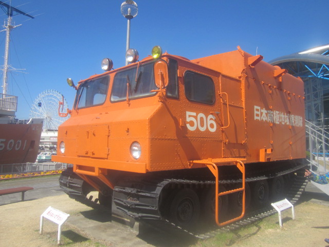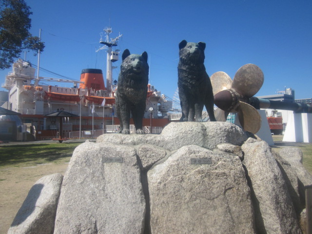 ここは船内は勿論、船が係留されている前の小公園にある各種の展示物が素晴らしいですね。昭和基地への物資・人員輸送の際に活躍した雪上車や、ふじのプロペラ・プロペラ軸、南極を模した床面の基地の場所に該当する箇所に置かれている南極の石、といった、南極テイスト満載で楽しめる一連の展示です。名古屋港にふじが係留されることになった記念に設置された、という、「タロ・ジロ」の像、なんてのも、近隣の幼稚園から遠足に来ていた子供達の人気を博していました。- 旅行時期