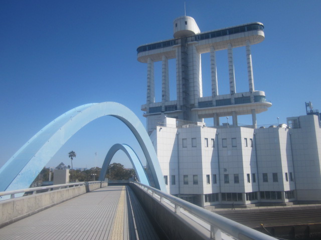 ただ、ここの南側の高台を登ると、一気に港の景観が開けて、その風景が素晴らしいので、広場を経由して、この”展望台”に向かう、というのがお勧めです。北側の駐車場に隣接するデザインもちょっとお洒落で、これもデザイン博の名残なのかな、なんて思いながら通り過ぎました。- 旅行時期
