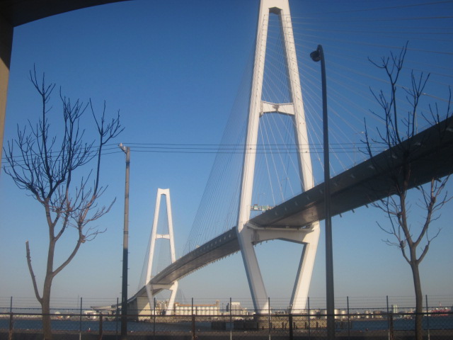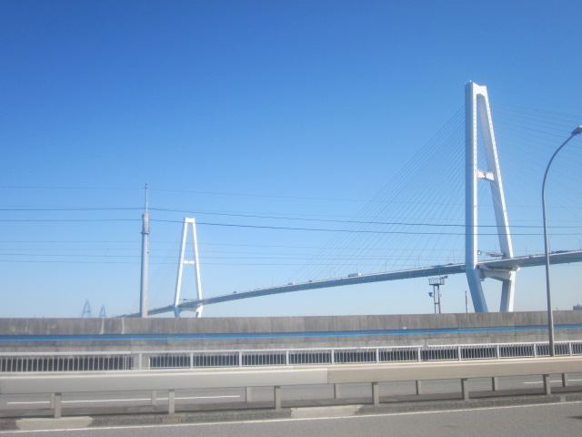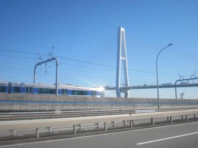 しかしこれこそが”怪我の功名”と申しますか、お陰で今回は、晴天に恵まれたこともあり、名港トリトンの中でも、一番大きな名港中央大橋の迫力ある光景を、金城橋の間近から存分に楽しむことが出来ました。すぐ近くをあおなみ線の線路が通じていますので、橋と鉄道車両のコラボ風景などの撮影にもお勧めですが、この道は交通量が多くて、逆側からの撮影ですと、タイミングにより通行車両に景観を阻まれることが多いのは欠点と言えそうです。- 旅行時期