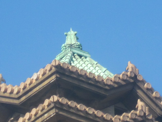 但し、勿論、市役所という建物の機能上、そんなに派手にする訳にはいきませんので、金鯱ではありませんが、最頂部の彫刻をズームして見てみると、しっかりと四方を睨む姿の鯱の姿になっています。建物自体、2014年になって漸く重要文化財に指定されたばかり、というのは、ちょっと意外な気がしますが、やはり名古屋に来た以上は、お城と共に、この昔ながらの市庁舎建築は見ておいて損はないかと思います。