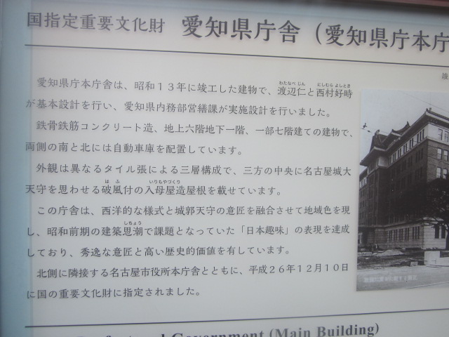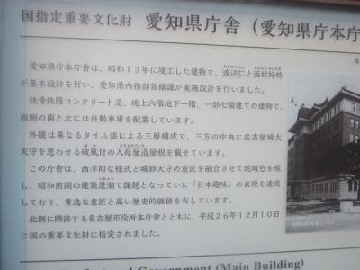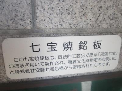 因みに、こちらの方の重要文化財プレートには、七宝焼きであることを示す案内が付されていて、デザインとしては全く同じ仕様に見える市役所と県庁のプレートですが、やはり、旧七宝町(現あま市)への配慮からか、それが七宝焼製であることを誇らしげに解説する内容の案内に、ちょっと心打たれました。- 旅行時期