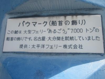 個人的にはここの最大の見所は、かつての太平洋フェリーの名古屋~大分航路で運航されていたフェリーに掲げられていたバウマークかなと思います。- 旅行時期