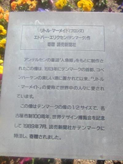 ここは勿論、海の景色が堪能できるのが良いところですが、それ以外にもマニアックな見所としては、怪しげなモアイ像やデザイン博の時代に設置されたという、実寸の半分のサイズというコペンハーゲンの人魚像のレプリカ、後はもしかするとふじのものかと思われるプロペラ・プロペラ軸が寂しげに展示されていたりして、話の種として色々な面白いものが見られるのもお勧めできる点だと思います。- 旅行時期