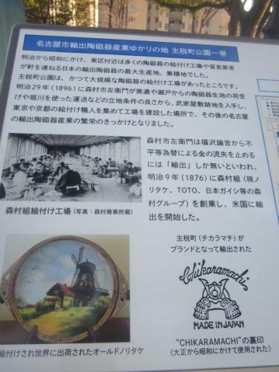 江戸時代の町並み保存地区という意味からは少し趣旨が外れますが、このエリアの西部、丁度市政資料館との間付近には、主税町公園というのがあって、実はこの一帯は明治~昭和初期にかけては、陶磁器の絵付工場や、貿易業者の建物が並ぶエリアであったことは、江戸の歴史の陰に隠れて、あまりピックアップされていないような気がします。