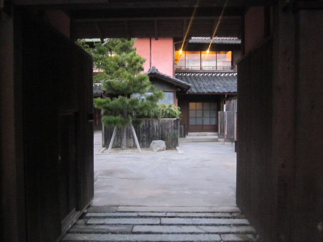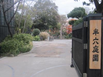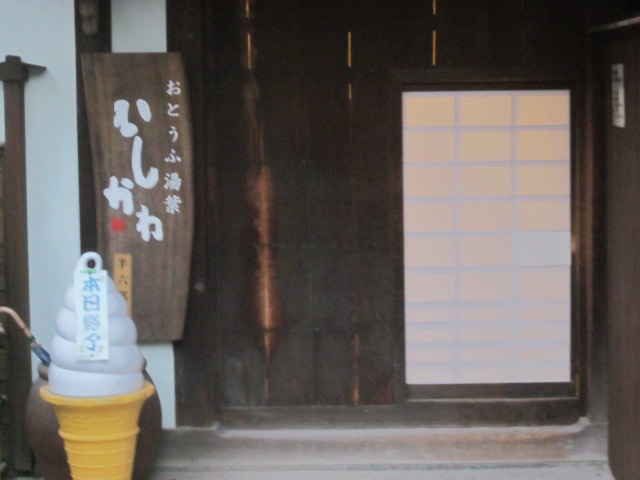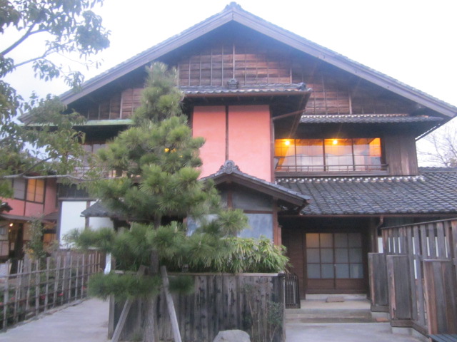 明治22年の建築という、半田の豪商として名を馳せた中埜半六家の邸宅で、半六庭園内の南門すぐ向かいに立地しています。歴史的には、邸宅が出来た翌年の明治23(1890)年に行われた陸海軍大演習の際に、明治天皇の侍医の宿泊所にも利用されたことがあるそうで、非常に由緒のある邸宅です。現在はお豆腐湯葉料理のお店として運用されていますが、見学希望であれば、気軽に応じてくれる雰囲気があります。(ただ、私の場合は貸切予約の団体さんがいらしたために、丁重にお断りされました…(^^;)。)お豆腐料理店としては、午後6時までの営業が通常ですが、予約の団体さんに関しては、その限りではないとのことでした。