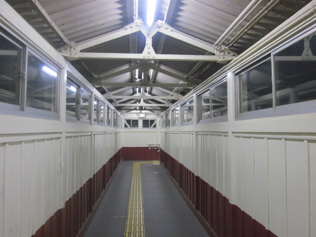 そんな”鉄道の町”半田の中心駅にあるのがこの跨線橋。きっと前書きが付く以上は他にもっと移設された古い跨線橋が存在する、ということなのでしょうが、建築時と同じ場所に残る跨線橋としては、現存する日本最古の跨線橋ということで、半田が誇るべき鉄道関連資産の一つと言って間違いありません。
