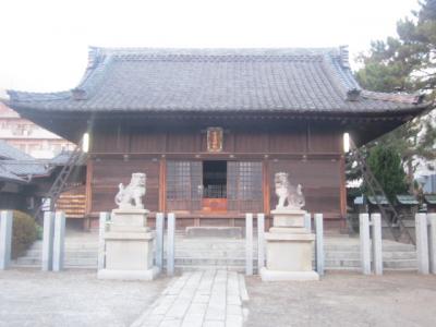 知多四国八十八か所19番札所の光照院のすぐ東隣にある神社ですが、本殿の外観は神社というよりもお寺という雰囲気の建物となっていました。その前に狛犬が一対鎮座されておりますので、神社であることが判別できます。