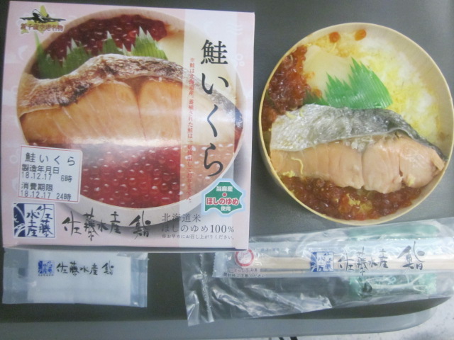 新千歳空港旅客ターミナルの2F、色々な店舗が並ぶ区画にある佐藤水産の空港店舗です。今回は暫く北海道を離れることもあって、最後に北海道らしいものをと思って、こちらの鮭いくら弁当を購入してみましたが、1380円と結構高額の割には、ちょっと量が少なかった上に、いくらも小粒でちょっと頼りなげな印象を受けました。味はそれなりに美味しかったですが、コスパという意味では、ちょっと良くないお弁当のように感じました。