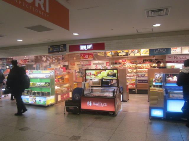 新千歳空港旅客ターミナルの出発階にあるブルースカイ店舗ですが、ここは非制限エリア内の店舗なので、飛行機に搭乗しない方も利用できます。規模も大きくて、各種電子マネーが使えたり、ポイントも貯まるのが良いです。お土産物は定番商品が無難に並んでいる感じで、目新しさは特にないですが、立地が良く、種類も豊富なので、買い忘れのお土産物などを探すのには良い店舗だと思います。