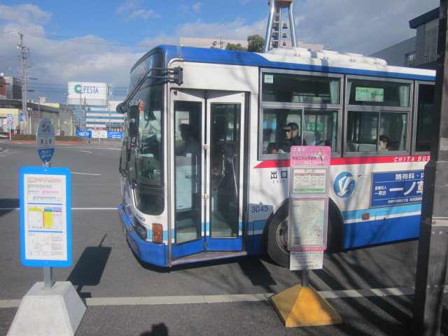 セントレアは乗り入れている鉄道が名鉄だけですので、18きっぷ利用時などはどうしても最寄りのJR駅が気になるところですが、その際に向かうべきなのが、半田という町で、空港バスレーンの5番乗り場から知多バス運行の名鉄知多半田駅行きが発着しています。名鉄知多半田駅とJR半田駅は少し離れていますが、歩けない距離ではないですし、空港からこのバスに乗る際は、途中、成岩橋バス停付近で下車して、東成岩駅まで歩くと、バス代は60円程安くなってよりお得です。
