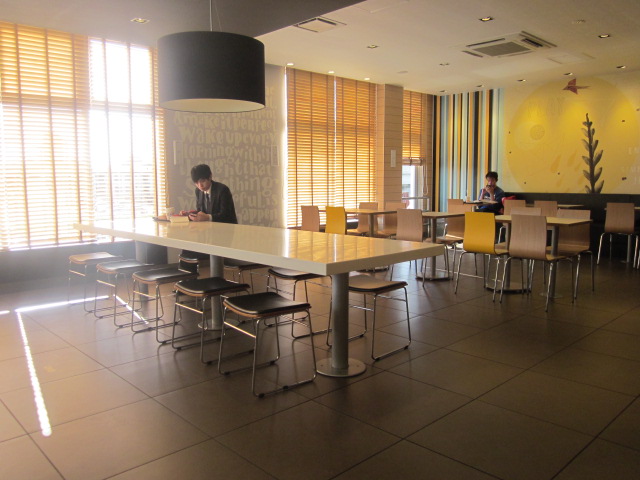 今回は中部国際空港(セントレア)から名鉄・知多半田駅行きのバスに乗車し、途中名鉄・青山駅で下車して、こちらのマクドナルドを利用しました。青山駅からは徒歩5分程度の近距離です。1Fにも客席がありますが、2Fの方がより広々としていて、快適に過ごせる店舗でした。キッズ用の遊具が設置されているブースもありますので、小さなお子様連れの方にもお勧めできる店舗です。