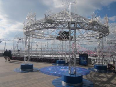 セントレアのスカイデッキで開催されている電飾イベントで、結構ロングランで秋から春にかけて楽しむことが出来ます。点灯時は混みあうことが多くて、定番の写真スポットは行列が出来たりすることもありますが、実は点灯前の明るい時間帯に、電飾の配置の構造や、地面のデザイン、頭上装飾の様子などを確認しておくと、点灯時にもまた違った視点からイルミネーションを楽しむことが出来るかなと思います。通常は17時からの点灯となっていますが、会期末期の2月以降は日が長くなる関係で、点灯時刻が18時からになるので注意が必要です。