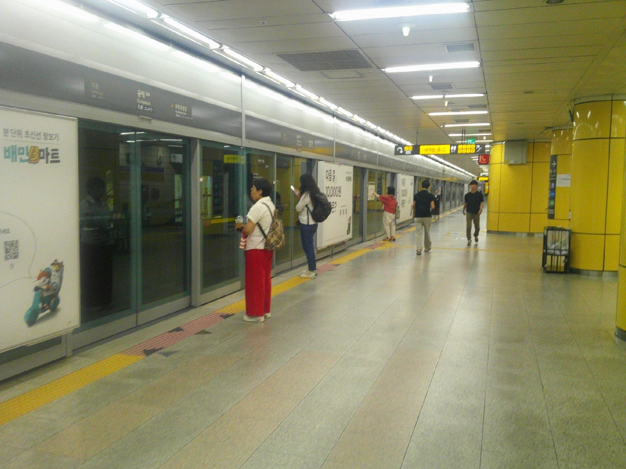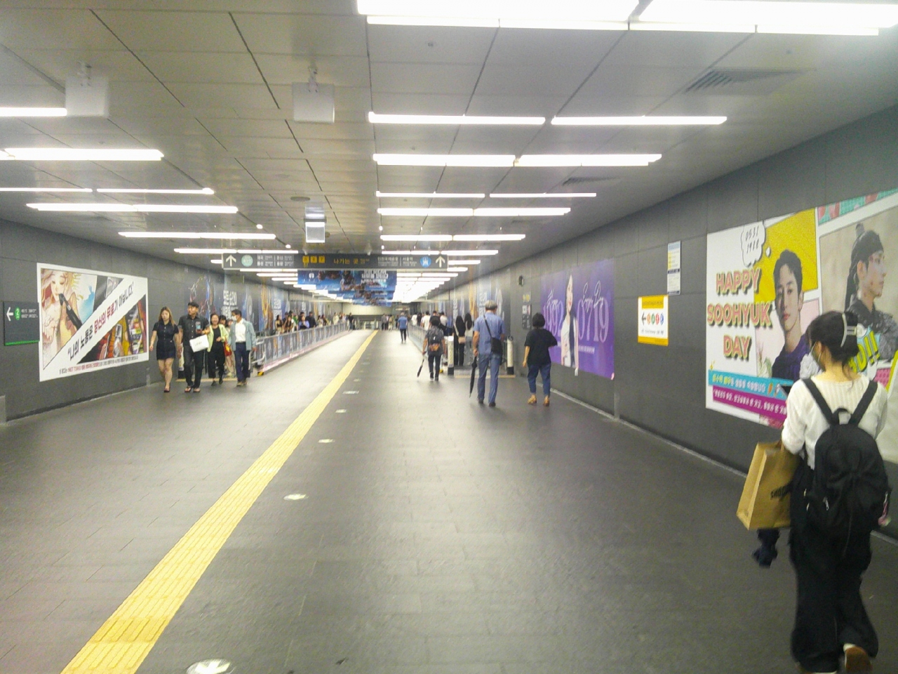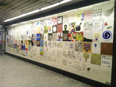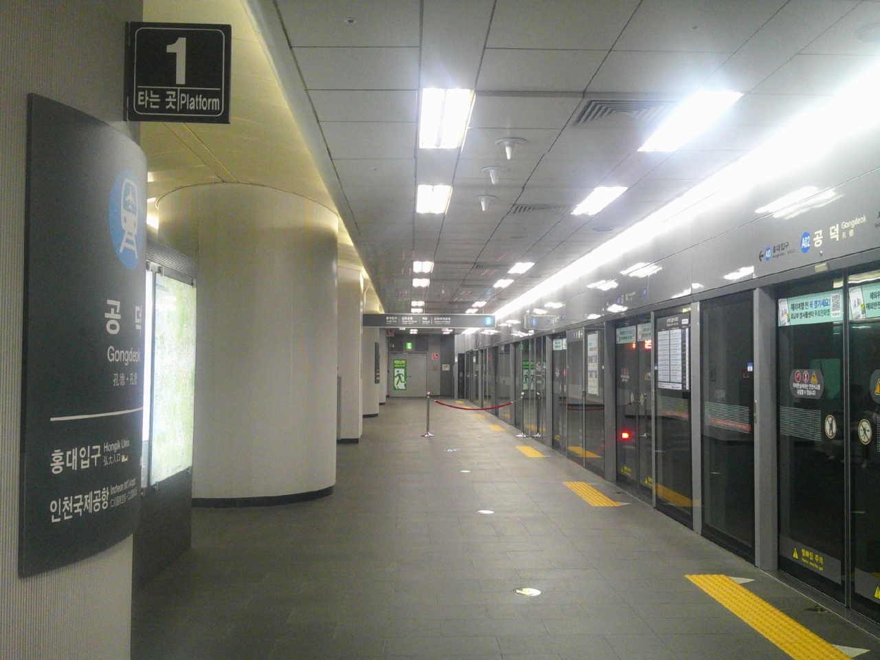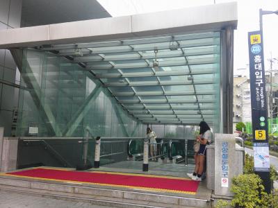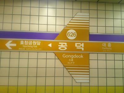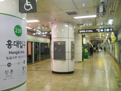 今回はこの駅の傍に宿を予約していたので立ち寄りました。この駅は地下鉄5・6号線と空港鉄道との乗換駅としてもお馴染みで、金浦空港・仁川空港に直行できる駅として、空港鉄道推しのデザインが色々と楽しめます。
