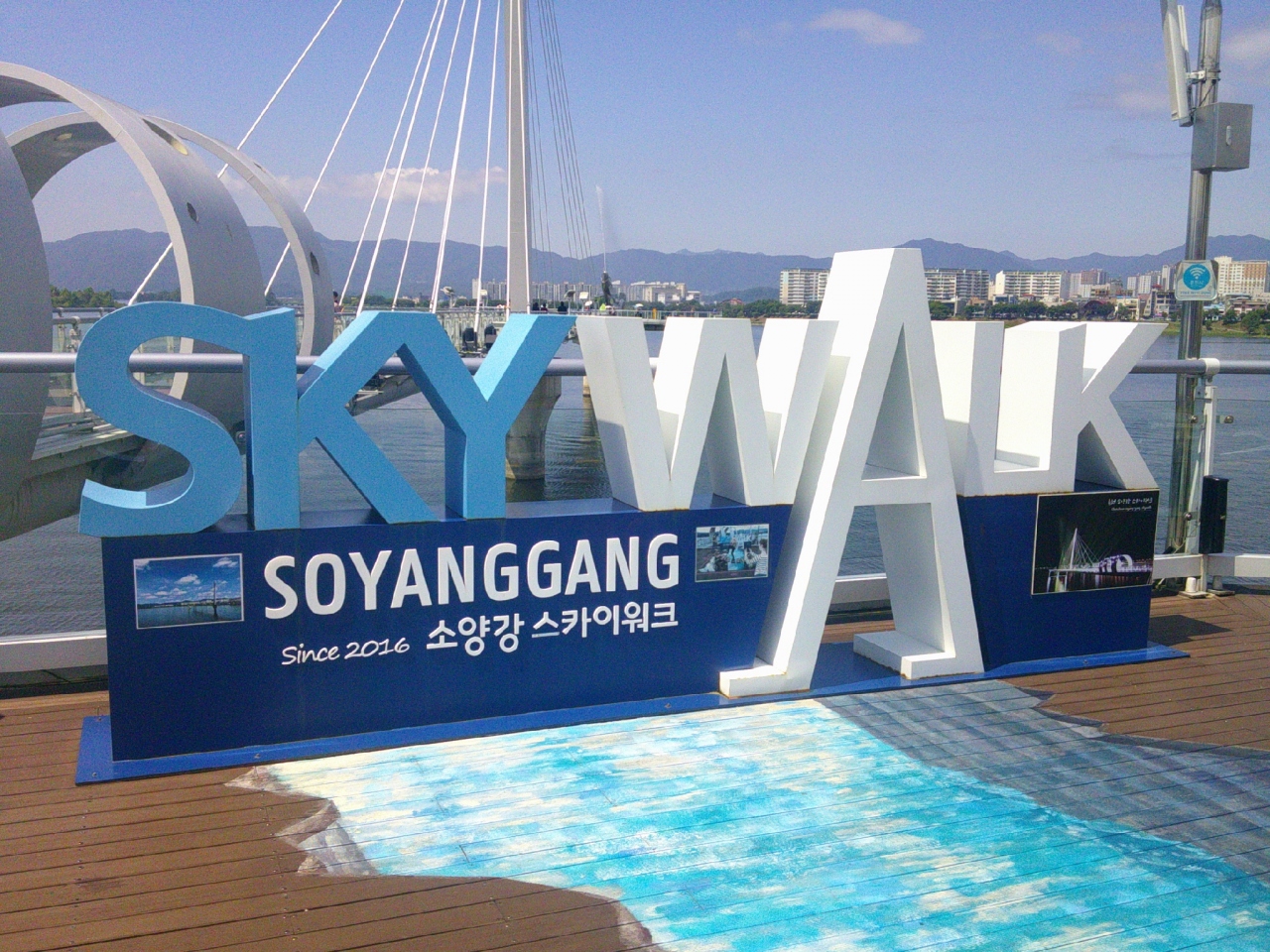 広義な意味での昭陽湖(衣岩湖)を楽しむという意味では、KORAIL京春線の終点、春川駅から徒歩15~20分程の距離にある昭陽江スカイウォークがお勧めで、川の中ほどに続く人道橋の突端からは、雄大な景色を楽しむことが出来ます。