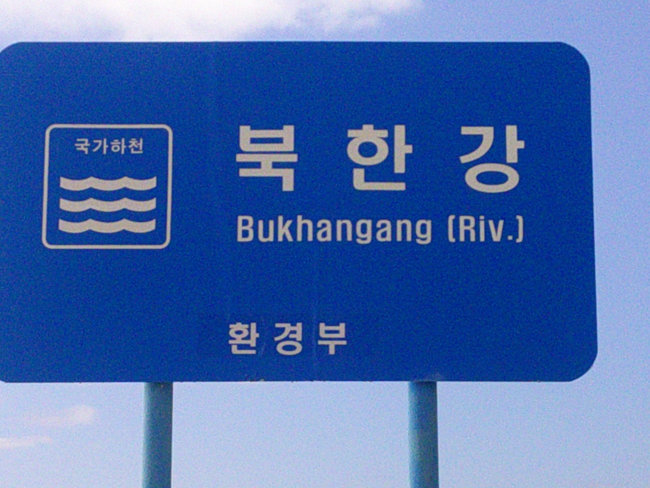 北漢江とその支流、昭陽江との合流点付近、衣岩湖と呼ばれる河川湖に架かる橋で、よく見ると、白・ピンク・水色の三色にカラーリングされています。