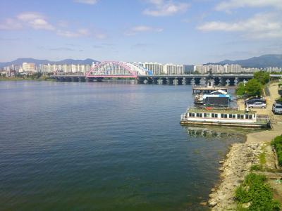 観光客的視点からは、直近から見ると特に面白味を感じない交通量の多い橋ですが、昭陽江スカイウォークから眺めると、手前に乙女像を配した美しいアングルで撮ることが出来ますので、春川らしい風景の一枚を収めるのにお勧めの被写体だと思います。- 旅行時期