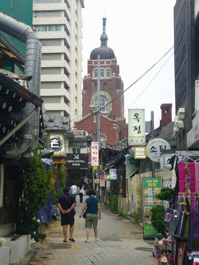 仁寺洞側からは、案外すっきりと見える場所がなく、12ギルの北側に東西に続く通路がありますので、ここを経由して東側に廻ると良いです。