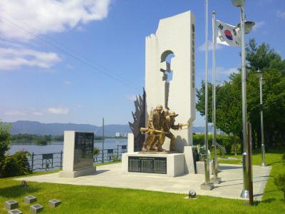 衣岩湖と呼ばれる、北漢江上の少し川幅が広くなっている河川湖沿いは、サイクリングロードとしても整備されていて、とても歩きやすいルートですが、その途中で、ベトナム戦争関連の慰霊碑も建っていました。