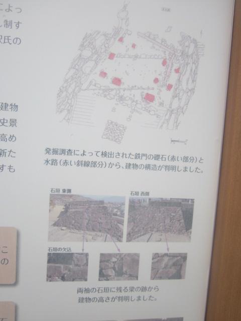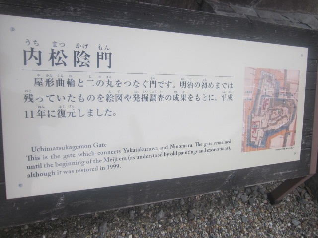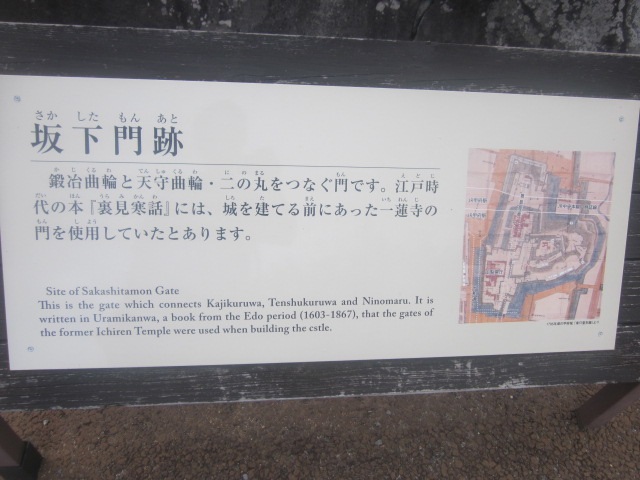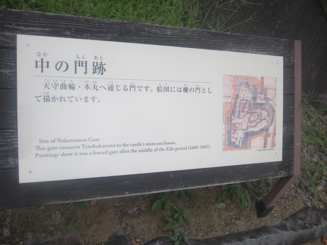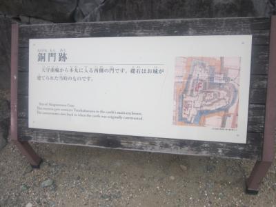 鍛冶曲輪の門から、天守台へと向かう際、その途上で通過する門跡で、復元を含めて、もんは現存していませんが、門があったことが解る石垣の並びなどがなかなか趣深くて、お城でも石垣が好きという方にはお勧めできる門跡だと思います。