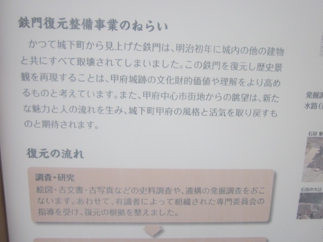 立派に復元された鉄門は、現在の甲府城跡では一番見応えがある門建築だと思います