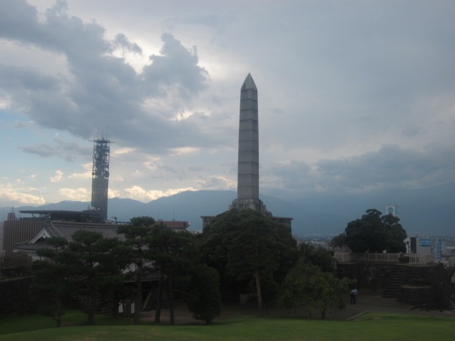 甲府城跡内に突如として設置されている頂部が三角錐型をしたオベリスク建造物です。設置された歴史的な経緯は多くの方が記されている通りなので、ここでは割愛させて頂きますが、世界各地で同様の建造物を見かけますが、こういう城跡にある場所はあまりないかと思いますので、甲府らしい景観を撮る被写体としてもお勧めです。