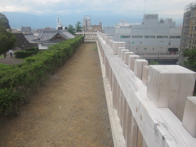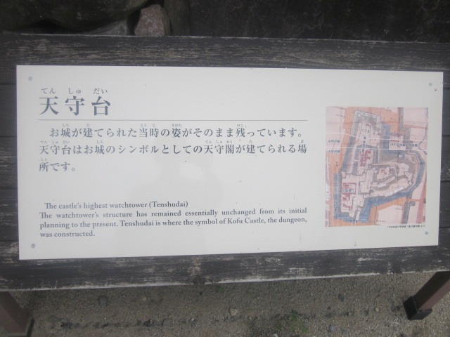 現代的な観光客視点から、甲府城跡が素晴らしいと思うのは、この天守台の存在だと思います。天守台とは、要はかつては天守閣があった基部の石垣が、現在では展望台のようになっているのですが、全国の多くの城跡では、こういう部位に、再建の天守閣のようなものを設置して、何だか違和感を感じる、なんてことがありがちな中で、甲府の城跡は、天守台の石垣の風情をそのまま活用して、展望台的に開放しているのが素晴らしいと思います。是非、天守閣を再建しようなんて話にならないことを願いたいものです。
