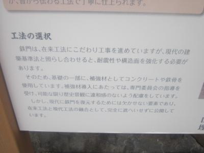 現在の甲府城跡エリアの中で、天守台のすぐ手前にあって、一番規模が大きくて写真映えする門建築がこちらだと思います。歴史史料等を基に、当時の姿に近い形で、忠実に再現された様子が解説板でも詳細に示されていて、歴史好きな方にはとても好感が持てる門ですし、ここが素晴らしいのは、脇道から登り口があって、内部見学できるようになっている点です。ただ、ここの見学口は結構早く(16時半)に閉まってしまいますので、遅い時間に訪問される方は、内部が見られなくなる可能性もありますので要注意です。