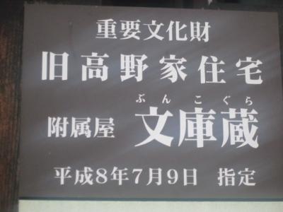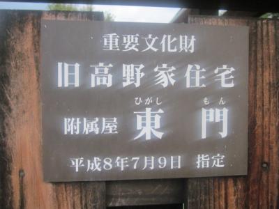 4トラさんのサイトでは、甘草屋敷としての登録と、甘草屋敷を含めた旧高野家住宅との双方の登録があって、不思議に思って現地に立ち寄ってみたのですが、現地を見て納得、この旧高野家住宅はかなり広大な面積を占めていて、主屋としての甘草屋敷以外にも、文庫蔵、長屋、東門といった付属の施設も充実していて、文庫蔵や東門等は重要文化財にも指定されているような貴重な建築でもあります。甘草屋敷につい目を奪われがちですが、こうした周辺の施設にも是非目を向けて、包括的に旧高野家住宅を楽しまれるとより充実した観光になるかと思います。