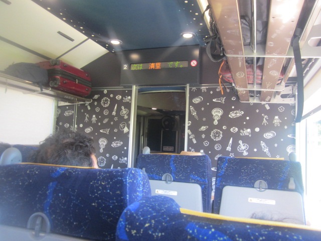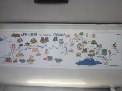 この列車名として運行されているのは、JR小海線の小淵沢側で、一応季節運行列車のようで、私の乗車時にも、”臨時”の表記が見られました。基本的に小淵沢~野辺山までを運行している普通列車、という感じなので、あまり車内ではイベント列車的なテイストは感じられないかと思いますが、流石に元から観光路線のテイストが強い小海線だけあって、車内では小海線沿線案内図なども見られました。
