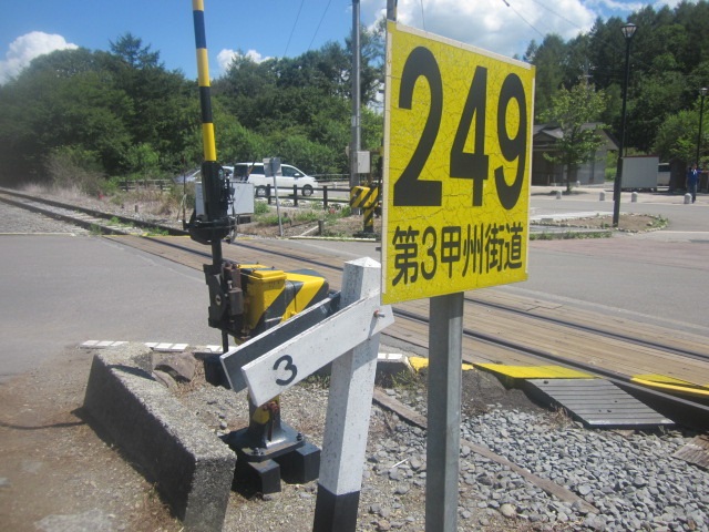 最高地点にあるのは、普通の踏切(第三甲州街道踏切)とか、清里側22パーミル、野辺山側3パーミルと記された勾配標とか、特に目新しい風情でもないのですが、やはり、すぐ隣にドでかい石碑が建っていたり、最高地点を冠したお店やホテルがあったりと、鉄道に興味がない方にとってもフォトジェニックな場所といえる所なので、ましてや鉄道ファンの方にとっては、聖地といって間違いないでしょう。