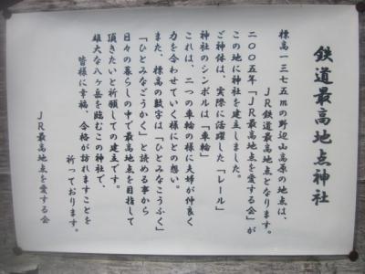 日本国在住の一鉄道ファンとしては、やはり、JR東西南北端の各駅(東根室駅・佐世保駅・西大山駅・稚内駅)と共に、必ず行っておかなくてはならないJR最高標高駅(野辺山駅)から、徒歩圏内にある、鉄路としての最高地点(因みに、トロリーバスを含めると立山の室堂駅が、ロープウェイを含めると、中央アルプスの千畳敷駅が最高標高駅となるようですが…)です。
