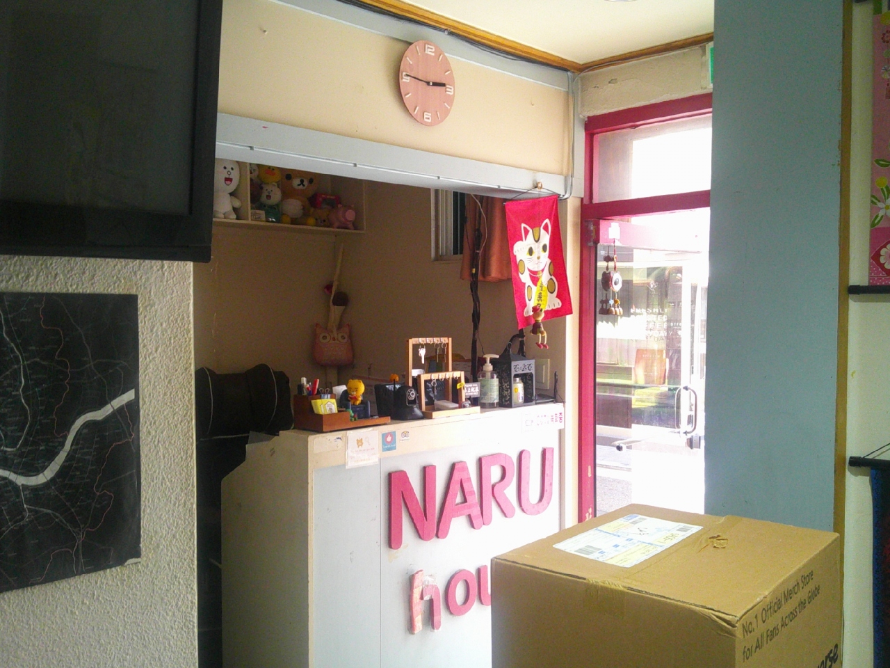 ゲストハウスの入口自体は4階にありますが、そこに続く階段入口が暗証番号ロックになっていますので、最初のチェックインの際には、お土産物屋さんに一声掛けて、ゲストハウスの方に取り次いで頂く必要があります。