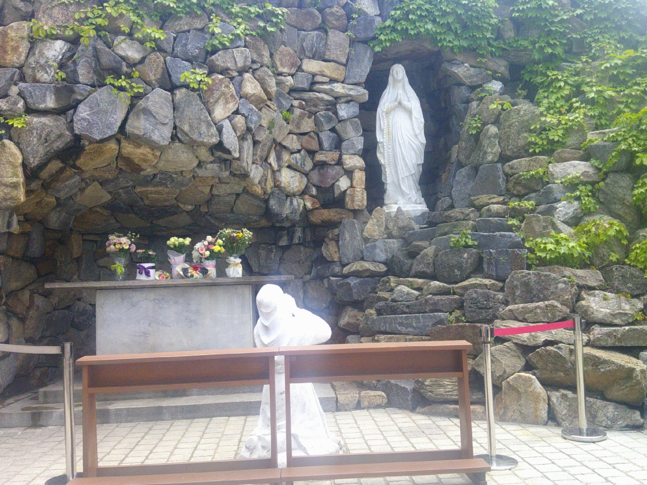 礼拝堂に入って、静かな時間を過ごすのが定番だと思いますが、日本語を含む、数か国語でパンフも用意されていて、裏手の聖母像のことや、地下の礼拝堂、階段途中の洞窟のことなど、詳細に解説されているので、これを見ながら巡られると良いです。